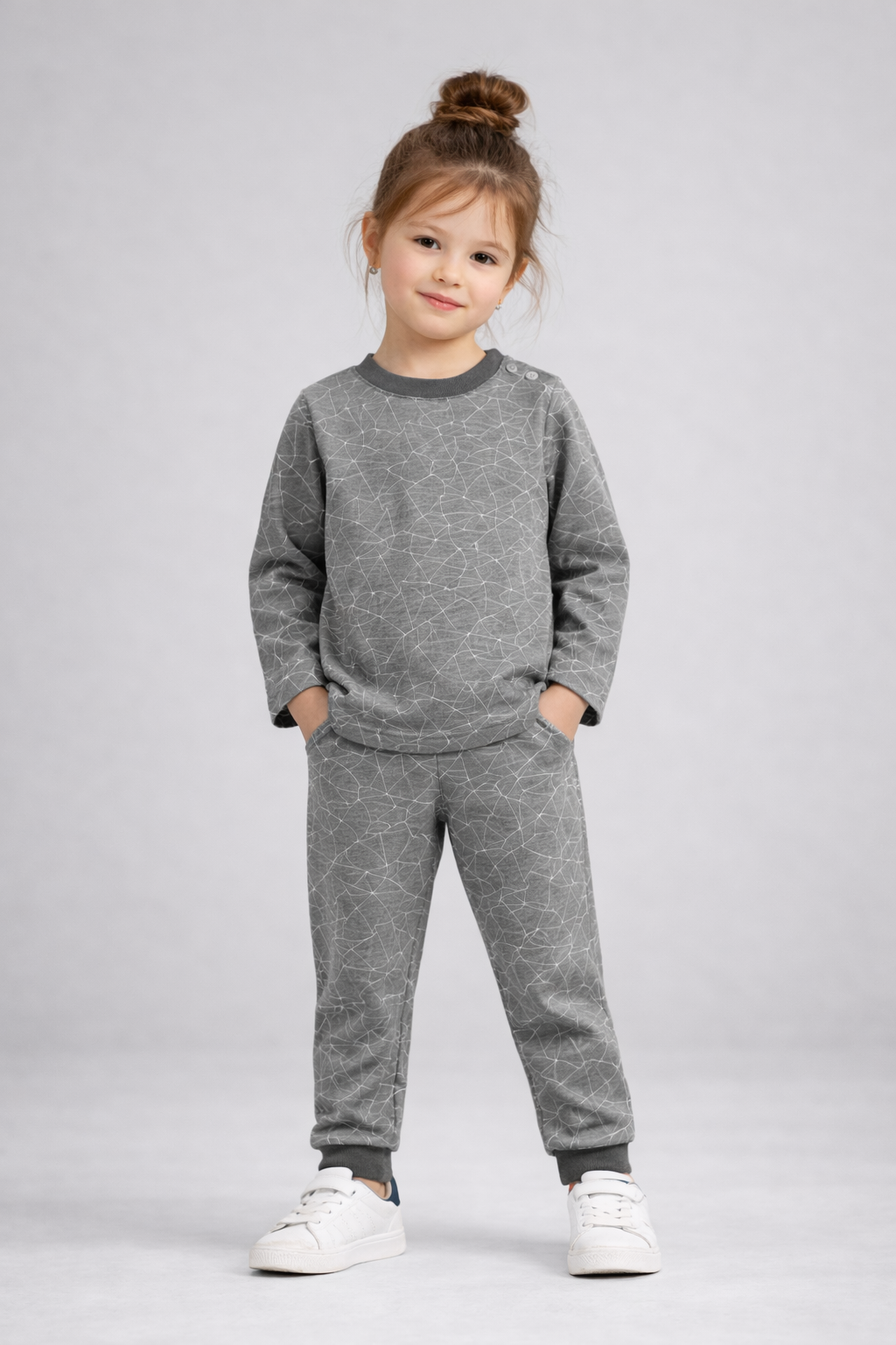 Çocuk Alt Üst Takım Gri Desenli Eşofman Takımı